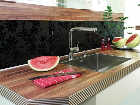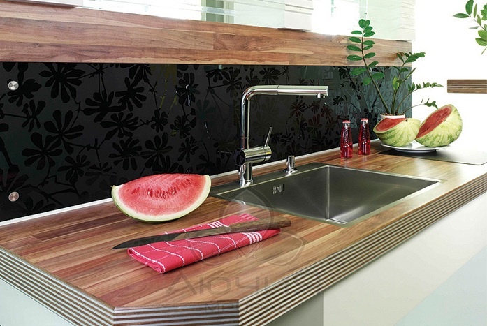 Наша компания использует столешницы только повышенной влагостойкости с пластиком ведущих мировых производителей (в основе – влагостойкая ДСП, облицованная HPL пластиком, герметизированная слоем полимерной смолы, толщина полотна – 38мм).