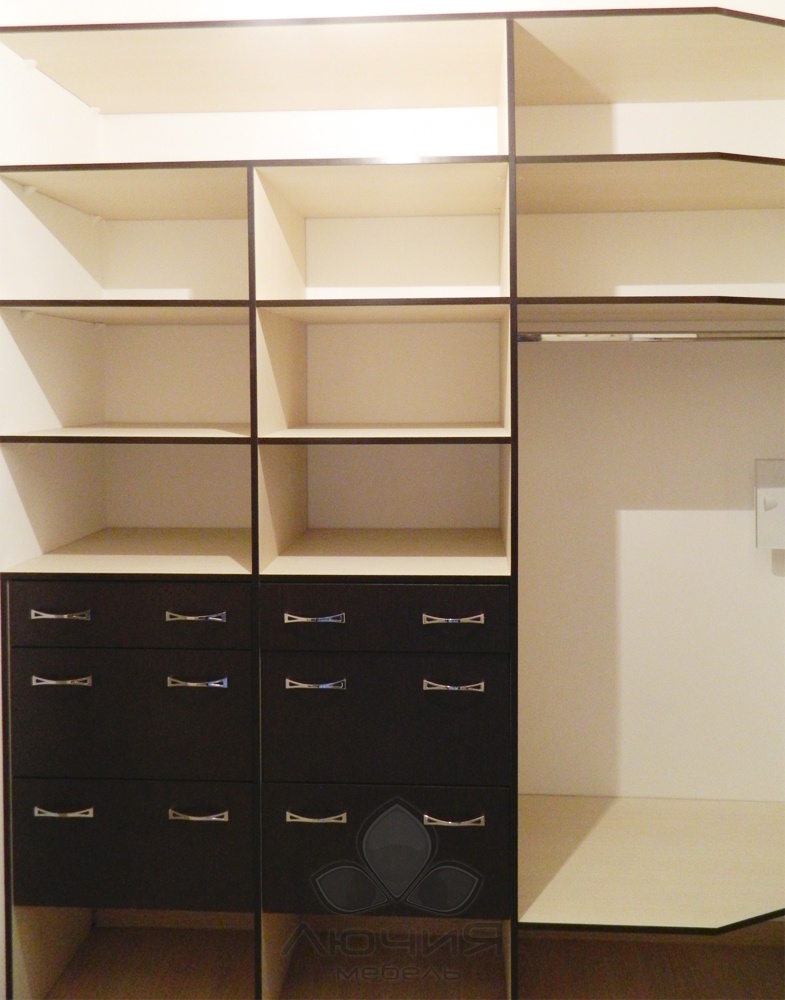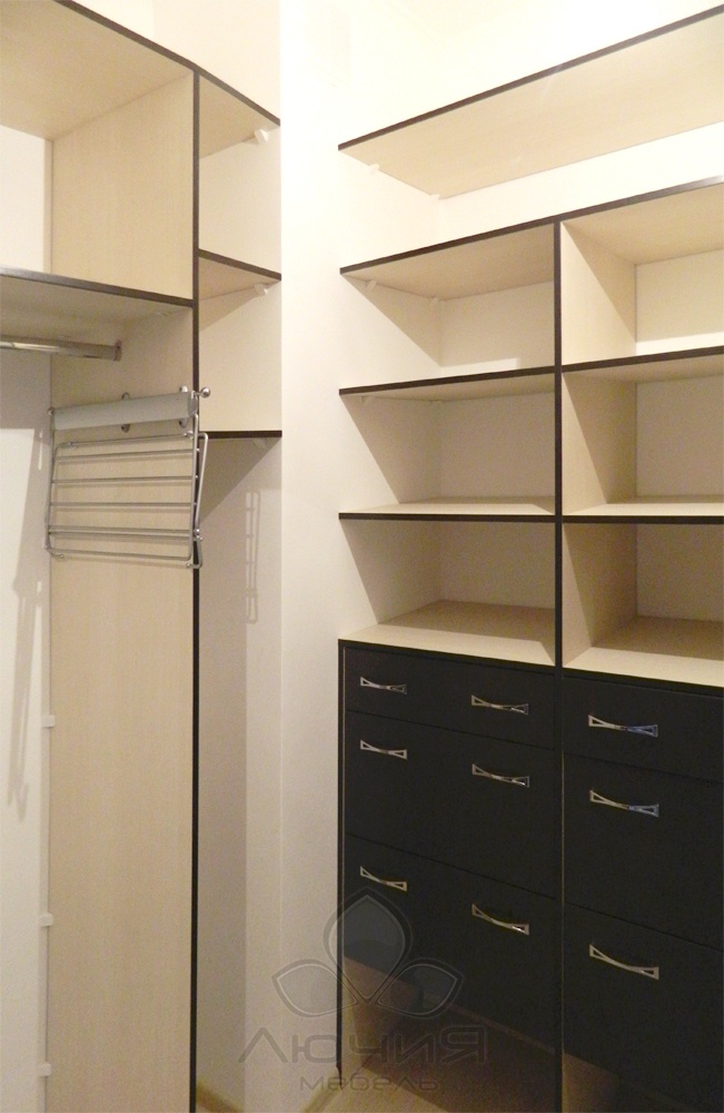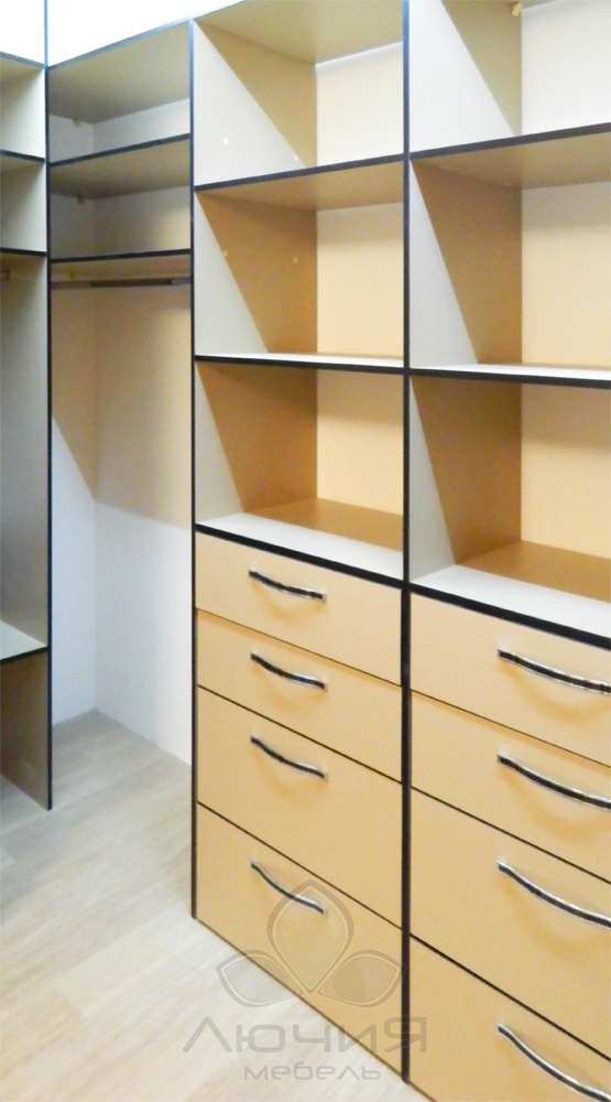 Являясь производителями, мы способны изготавливать как наполнение для гардеробных комнат (стеллажные системы с каркасом из алюминиевого профиля, плитных материалов), так и независимые от планировки зоны хранения с использованием натурального шпона и фасадами из натурального дерева. Для сторонников современного стиля и для оптимального зонирования пространства возможно изготовление как прямолинейных дверей-купе, так и радиусных /выгнутных, вогнутых, волновых/. В своих изделиях мы используем проверенную долговечную фурнитуру Blum, Triomax, Hettich, Vibo.