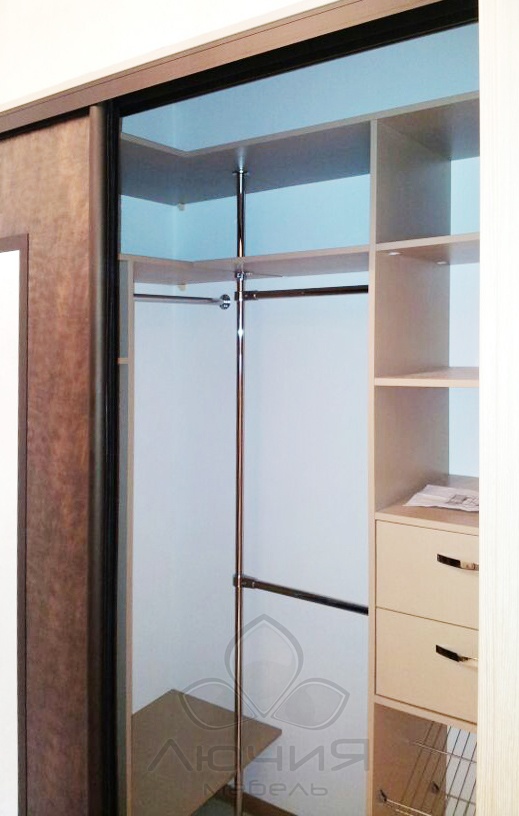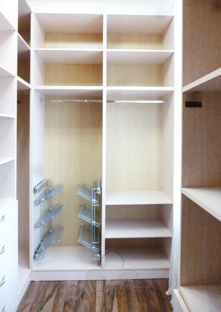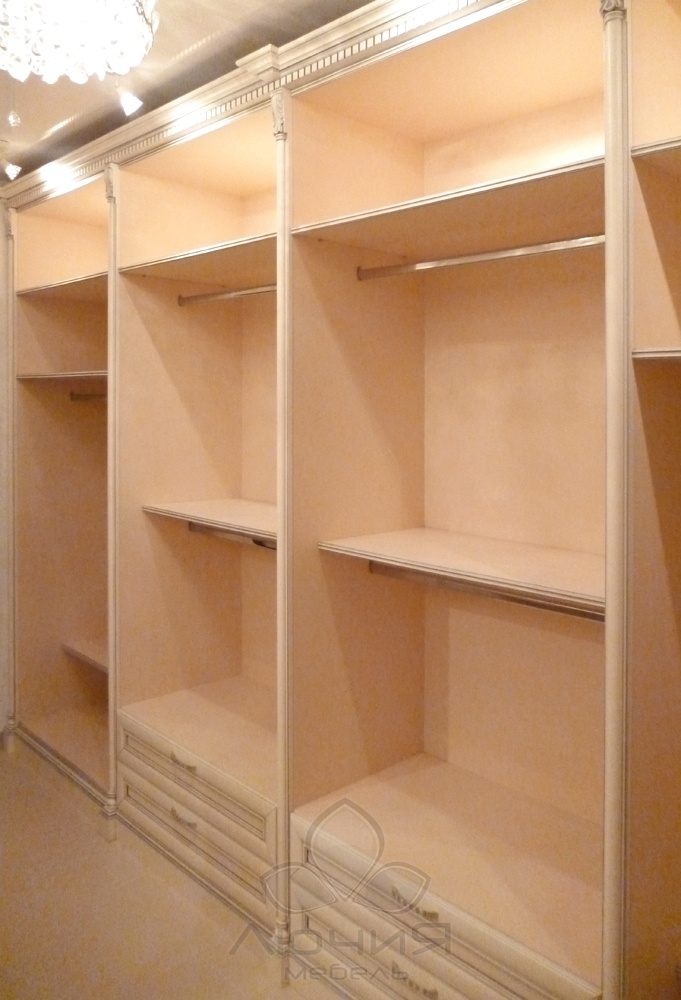 Являясь производителями, мы способны изготавливать как наполнение для гардеробных комнат (стеллажные системы с каркасом из алюминиевого профиля, плитных материалов), так и независимые от планировки зоны хранения с использованием натурального шпона и фасадами из натурального дерева. Для сторонников современного стиля и для оптимального зонирования пространства возможно изготовление как прямолинейных дверей-купе, так и радиусных /выгнутных, вогнутых, волновых/. В своих изделиях мы используем проверенную долговечную фурнитуру Blum, Triomax, Hettich, Vibo.